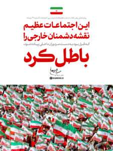 ✍️ حضرت آیتالله خامنهای رهبر انقلاب اسلامی در پیامی ضمن تجلیل از کار بزرگ ملّت عظیمالشأن ایران در اجتماعات گسترده امروز و روز تاریخیای که آفریده شد، تأکید کردند: ملّت ایران، خود را و همّت و هویت خود را به رخ دشمنان کشید و این هشداری به سیاستمداران آمریکا بود که فریبکاری خود را متوقف کنند و به مزدوران خائن تکیه نکنند. 🖼 متن پیام رهبر انقلاب اسلامی خطاب به ملّت ایران به این شرح است: ✍️ بسم الله الرّحمن الرّحیم ✏️ ملّت عظیمالشأن ایران! ✏️ امروز کار بزرگی انجام دادید و روزی تاریخی آفریدید. این اجتماعات عظیم و سرشار از عزم راسخ، نقشهی دشمنان خارجی را که قرار بود به دست مزدوران داخلی پیاده شود، باطل کرد. ✏️ ملّت بزرگ ایران، خود را و همّت و هویت خود را به رخ